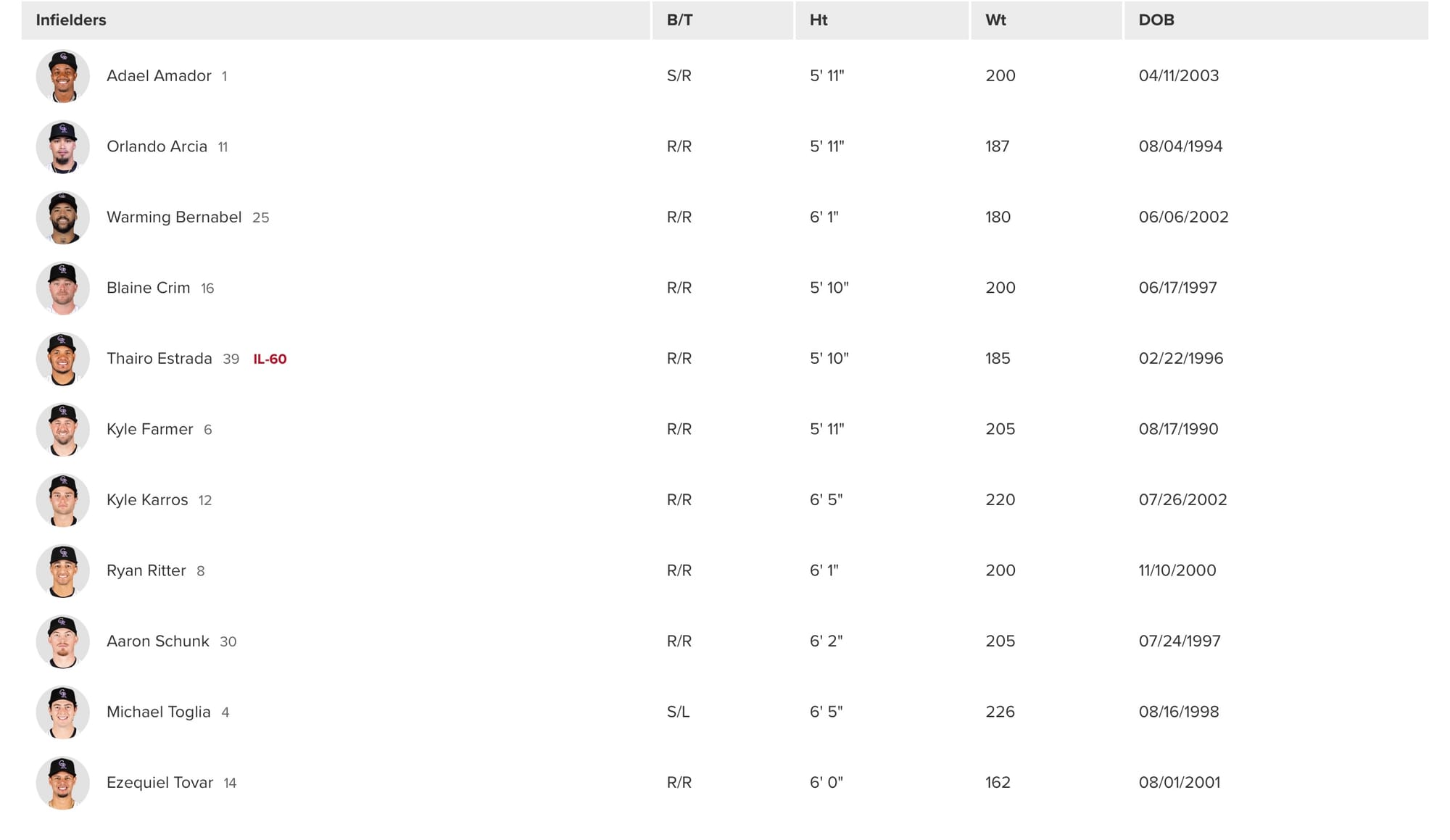 But let’s consider what the infield might look like in 2026. Here’s the current 40-man roster.