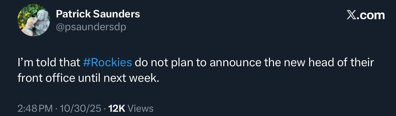 Maybe the new PBO/GM will decide that 2026 is a wash for the Rockies anyway and will put their attention to building the farm and the Rockies analytics systems. If the Rockies want to develop young players at the MLB level who are inexpensive, working with this roster would certainly accomplish that goal even if not all of them appear to have an MLB future.