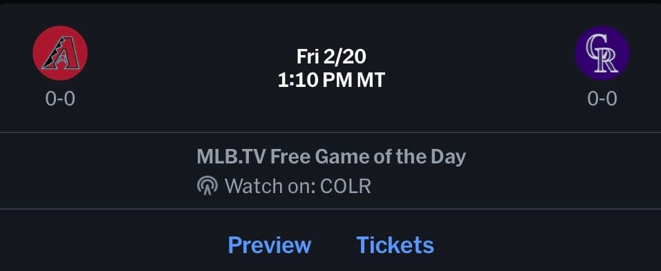 In a long-standing tradition, the Rockies will welcome their follow denizens of Salt River Fields, the Arizona Diamondbacks at 1:10. (And, yes, the game will be free and on Rockies.TV.)